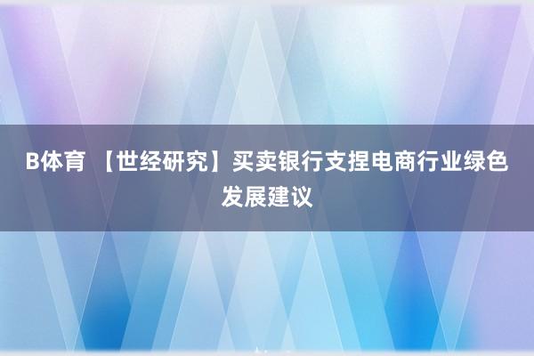 B体育 【世经研究】买卖银行支捏电商行业绿色发展建议