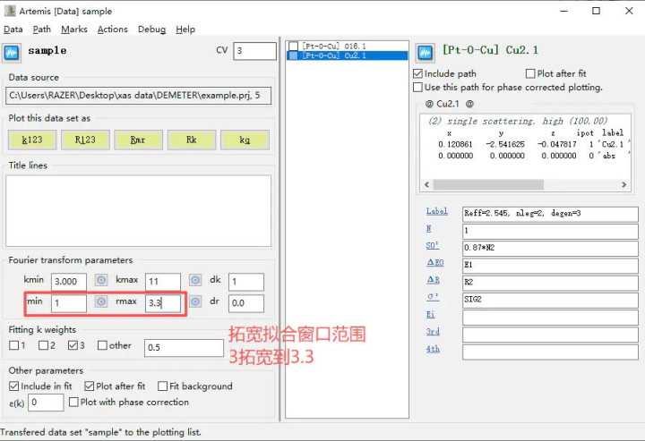 本次数据为一个亚氧化态的Cu团簇在其他载体上,关于样品的隔壁原子可能有多种,咱们会最初对3Å以内的隔壁原子进行尝试拟合。