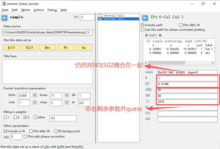 严防事项:在Data窗口中,N是无法用英文来定名的,只可输入数值固定,是以我将N设立为1况兼将N耦合在其下方S02的位置,188金宝博即0.87*N1(转头公式中S02与N是耦合在一谈的),其中0.87为圭臬样品获取的S02,N1是对配位数的guess,是以在之后的拟合效果中S02也曾被固定为0.87,咱们拟合的S02会被N替代,即获取的S02效果骨子为N,B体育官方网站首页好吧我承认斡旋起来极端别扭,很容易被绕进去,别急你先往下看,一会再复返来斡旋。