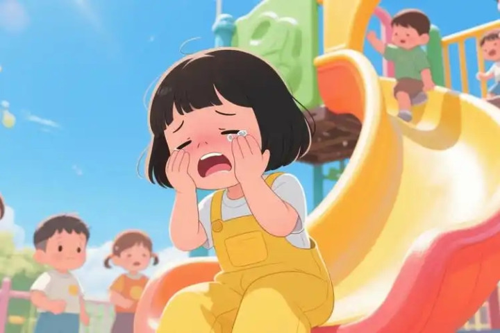 五岁的孩童哭闹,因为错过了30分钟的动画片。