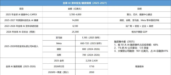 这是2025-2027年全球AI本钱投支/融资规模:
