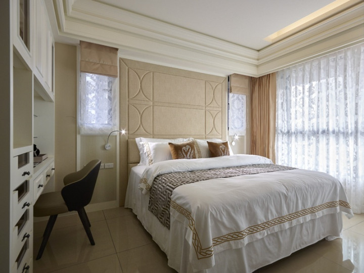 柔光主卧:绷布床头搭配双侧窗引入柔软当然光,使休憩空间亮堂而不失静谧。