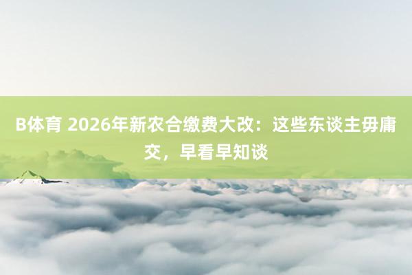 B体育 2026年新农合缴费大改:这些东谈主毋庸交,早看早知谈