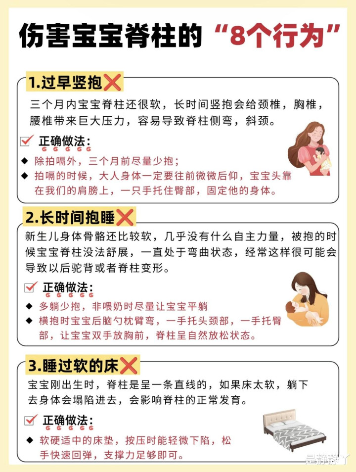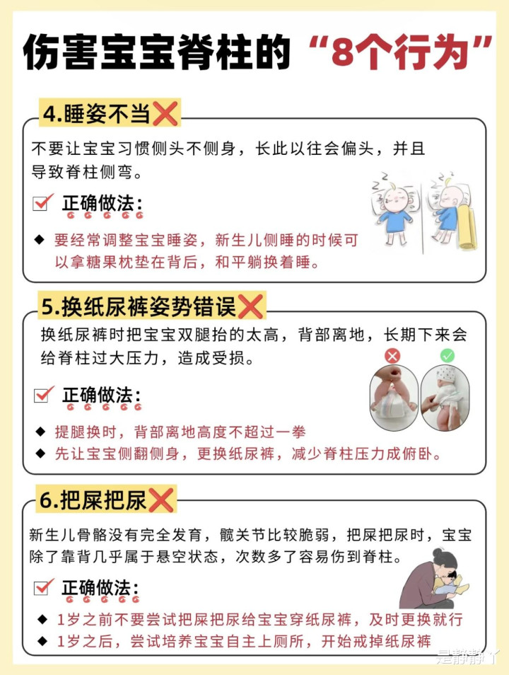 你有莫得过这么的倏地?看着怀里软乎乎的小宝贝,忍不住思把他竖着抱起来,凑近我方脸蛋亲一口;好像为了哄睡,抱着他在怀里晃悠半小时,直到他睡得香甜才敢轻轻放下;又好像给宝宝换纸尿裤时,为了绵薄,把他双腿抬得老高,顺遂就把尿裤换好了……这些看似再庸俗不外的动作,背后却可能藏着伤害宝宝脊柱的“隐形炸弹”。