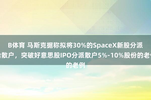B体育 马斯克据称拟将30%的SpaceX新股分派给散户,突破好意思股IPO分派散户5%-10%股份的老例