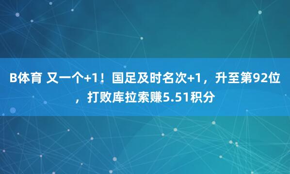 B体育 又一个+1!国足及时名次+1,升至第92位,打败库拉索赚5.51积分