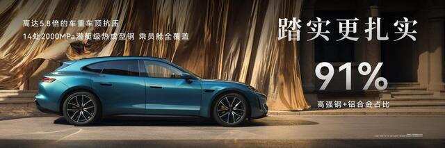 安全是最大的豪华,尚界Z7、尚界Z7T以硬核车身,为用户筑牢出行安全防地。车身高强钢与铝合金占比高达91%[10];全车14处2000MPa潜艇级热成型钢9,高达5.8倍9车重车顶抗压,为乘员舱提供坚实保护。