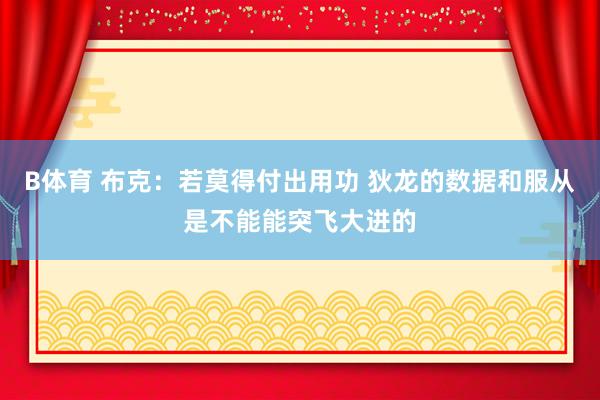 B体育 布克:若莫得付出用功 狄龙的数据和服从是不能能突飞大进的