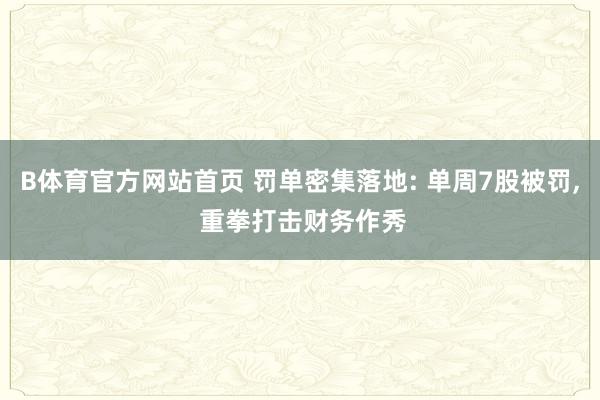 B体育官方网站首页 罚单密集落地: 单周7股被罚, 重拳打击财务作秀